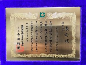 第59回全国建設業労働災害防止大会in金沢にて安全衛生表彰 優良賞(会社)を受賞しました。